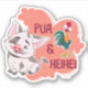 This charming graphic celebrates the delightful pairing of Pua and Heihei from the animated movie Moana. Featuring the plump and lovable pig Pua, with his big, soft eyes and a friendly smile, alongside the comically wild-eyed rooster Heihei, this design captures their contrasting yet endearing personalities. Set against a soft coral background adorned with light pink flowers, the title "Pua & Heihei" is prominently displayed, enhancing the playful and heartwarming vibe of the image. This graphic is perfect for fans of the film, embodying the humor and warmth that these characters bring to the story.