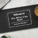 Hotel Bar Mats with Hotel Name plus Welcome message. Ideal for placing in pubs and bar room settings. Use in pubs and bars. Black and white.