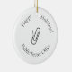 Lightweight, smooth, pure white ornament with nice sheen. Perfect size to be seen from across the room ... and to attract closer inspection! Price was great for ordering enough for the whole family! Clear, bold black design just as requested. Matches the order exactly. Just so nice!