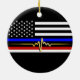 A thin blue , red and yellow line patriotic flag-themed ornaments. Celebrate those men and women of the US police force, fire rescue and dispatch.