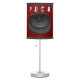 The lamp looks exactly like the picture, bright and colorful. The lamp shade is plastic not what I expected, however I love it! The printing is clear and the name can easily be read.