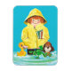 Artist: Jack Weaver | Girl with raincoat stands in puddles with frog, dog, and duck