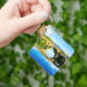 The key chain is made of metal and really sturdy. The flower design is really cheerful. The logo and colors are clear and crisp!