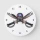 Puerto Rican Flag - Skull and Crossed Swords Round Clock