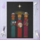 This vibrant boricua illustration reimagines the Three Kings through a Puerto Rican lens, blending folk art textures, geometric robes, and musical instruments that echo the island’s festive parranda traditions. Each figure honors cultural pride with symbolic headwear and serene expressions, evoking the spirit of parrandas, community, and ancestral joy. A celebration of heritage, rhythm, and unity.