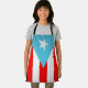 Great color and even though I ordered the kid size, it covers well enough to use during the holidays. I am not a big woman and prefer a shorter apron. I stand 5"6" and the length of the garment goes to mid-thigh. The tie straps fit well at my waist and even though there is no neck strap adjustment, the opening is plenty big enough. I am happy with the size and fit. I am sharing my apron with my 10 year old grandson, too! The color is vibrant and looks good, as shown on the website. The stitching looks strong and reinforced. Photographed is front side and back side of the apron, reinforced straps and coloring. My phone camera may not be the best at showing the details.