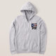 Vintage Puerto Rico flag custom zipped hoodie for men. Personalized clothing for men, sports team, work, event and more. Gray, white and navy colors. Upload your own logo optionally.