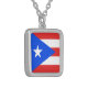 Puerto Rico Flag Square Silver Plated Necklace