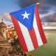 Puerto Rico House Flag of blue, red, and white with one large white star. The flags of Puerto Rico represent and symbolize the island and people of Puerto Rico. The most commonly used flags of Puerto Rico are the current flag, which represents the people of the Commonwealth of Puerto Rico; municipal flags, which represent the different regions of the island; political flags, which represent the political beliefs of the people; and sports flags, which identify Puerto Rico as the country represented by its athletics during competitions.