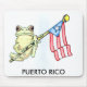 A mouse pad with a Puerto Rican flag with a frog on it.