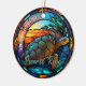 Cute faux stained glass tropical sea turtle scene, personalizable trip souvenir. Great for Christmas and family vacation keepsake, or honeymoon keepsake.
