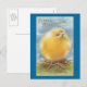 A fluffy puffy yellow chick in a vintage Easter postcard from 1909.