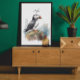 Turn your favorite design into a stunning piece of home decor with this custom framed art. This gallery-quality print features the elegant watercolor puffin, capturing its serene beauty on premium paper. The minimalist design is perfect for adding a touch of coastal charm and sophistication to any room, whether it's your living room, bedroom, or office. It arrives ready to hang, making it an effortless way to transform your space.