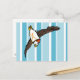 A funny cartoon illustration of a cute puffin wearing a knitted woolly hat. The puffins hat is stripy with a pom pom and tassels. The background is a trendy blue and white stripe pattern. If you would like any help customizing this design please feel free to contact me using the ask this designer button, just below this text, or via my website www.tiki.graphics