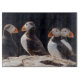 Photograph of 4 puffins looking in opposite directions on rocks at Farne islands, Northumberland.