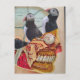 Puffins on my Brain Surreal mixed media collage Postcard