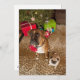 Pug and boxer sitting in front of Christmas tree Holiday Card