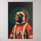 Pug Astronaut Poster, Pug Retro Print, Pug Poster
