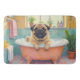 A playful Pug enjoying a bubbly bath in a bright and colorful bathroom setting. This fun and adorable design adds charm and personality to any bathroom space.