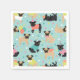 Cute birthday party Pug dogs with black and tan coats dressed in cute birthday outfits with balloons, cake and confetti pattern.