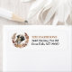 The left side of these return address labels feature a portrait of an adorable little Pug dog. The image is enclosed within a pretty autumn floral and leaf wreath in tones of brown, tan, and cream. Your custom text is in black and gold brown at the right.