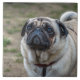 A beautiful photograph of a cute pug dog printed on a ceramic tile.