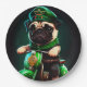 Pug Dog Driving Bike St. Patrick's Day Paper Plates