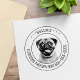 Customizable pet photo and text stamp. Please note, you may need to adjust the information by adding or deleting some characters to make the text properly aligned.