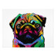 A bright and colorful pop art print of a Pug Dog on a white background.