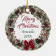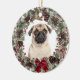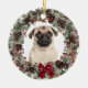 Pug Dog Red Bow Pinecone Wreath Personalized Ceramic Ornament