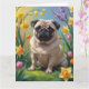 A cheerful dog sits peacefully on lush green grass, surrounded by colorful spring blooms under a soft blue sky. This digital oil painting captures a serene moment with expressive brushstrokes, warm colors, and a sense of gentle joy.