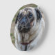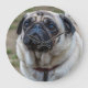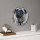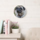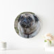 A beautiful photograph of a pug dog printed on a round wall clock.