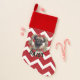 Pug dog in a christmas wreath, with your dogs custom name underneath this classic festive Christmas Stocking in red and white.
