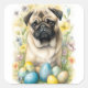 Pug Dog with Easter Eggs Holiday Square Sticker