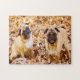 Pug Dogs. Jigsaws of Dogs, These Jigsaws are made of sturdy cardboard and mounted on chipboard, these puzzles are printed in vivid and full colour. For hours of puzzle enjoyment, give a custom puzzle as a gift today! Size from: 11" x 14" (252 pieces) Up to: Super Size:20" x 30" (1014pieces) Includes beautiful gift box with puzzle image printed on lid. Sturdy cardboard stock, mounted on chipboard. Easy wipe-clean surface.