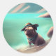 The Pug dog on beach design is an illustration or image depicting a Pug dog enjoying a day at the beach. The Pug, a small breed of dog with a wrinkled face and curled tail, is often portrayed as a happy and playful companion in this design. The beach setting typically includes a sunny sky, blue water, and sandy shores with palm trees or other beach scenery in the background.
