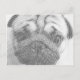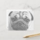 A cute pug face with carved effect applied to design. Custom postcards. Lines of different width creating the image. Gift idea for people that love pugs.