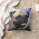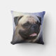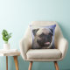 Fawn colored pug face over a blue hued painting like background dog lovers throw pillow