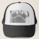 A cute pug face with carved effect applied to design. Lines of different width creating the image.