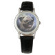 FAwn colored Pug dog face on a painting like background in shades of blue dog lovers wrist watch