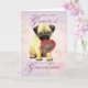 Show your love for your grandmother for Mother's Day or any day with this original design of a cute little Pug puppy holding a fancy heart and words saying Greatest doggone Grandma. Inside text says, Happy Mother’s Day. This can also be customized for aunts, sisters or anyone else you think are the greatest!