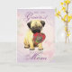 Show your love for Mom for Mother's Day or any day with this original design of a cute little Pug puppy holding a fancy heart and words saying Greatest doggone Mom. Inside text says, Happy Mother’s Day. This can also be customized for grandmas, sisters or anyone else you think are the greatest!