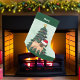 This beautiful pug has their head tilted inside of a cute Santa Claus hat. The adorable dog is sitting in front of a pretty Christmas tree decorated with colorful ornaments. Personalize this Christmas stocking for your pet in lovely red cursive above the wonderful drawing of my favorite doggy.