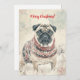 Pug In Snow Minimal Vintage Christmas Holiday Card