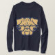 Googly-eyed cartoon pug with horn-rimed glasses. Retro, team mascot style art, blue & gold, on t-shirts, hoodies, cards, gifts. Gooooooo Nerds!