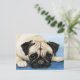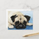 This postcard features a reproduction of my original watercolor of a pug.