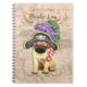 Arrf, ye matey! Keep a log of your pillaging ways with a notebook showing a cute Pug puppy wearing a pirate hat and bandana on an old map background. Great design to appeal to all Pirate and Pug lovers on land and sea alike.