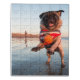 Pug Playing Ball on Beach Jigsaw Puzzle