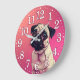 Pug Portrait Face Pink Ombre Large Clock