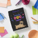 I was super excited when I got my cover in. It is attached by a magnet across the edge. I don’t think it will be very protective but it is very cute. I’m going to keep my iPad in a sleeve and use this face cover while I have it out. It folds to create a tilt for better viewing and to keep the iPad at a slight angle for typing. The colors are bright and it is fun. I’ve really enjoyed it. The personalization looks like amazing. It is the same color as the picture and is the same brightness. Well done! Very nice.